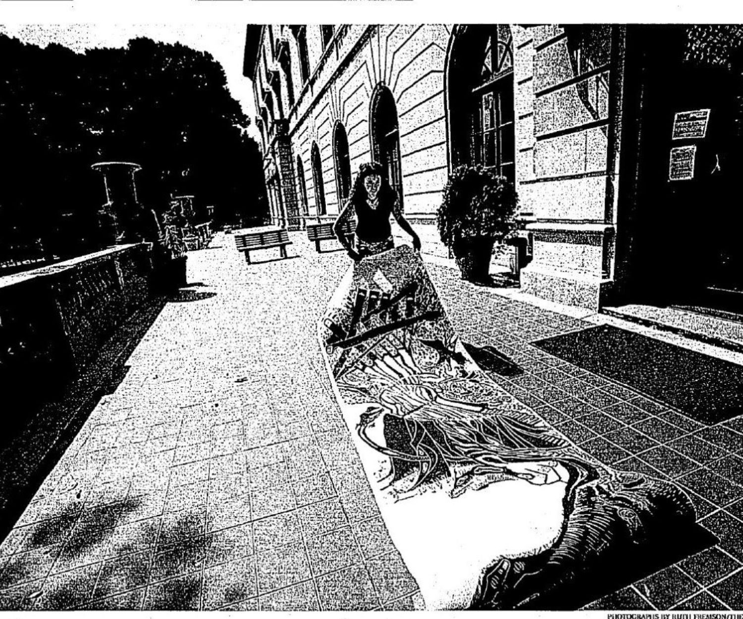 Tammy Wofsey, among the 80 artists featured in the photography exhibit “The Bronx Artist Documentary Project,” unrolls one of her…